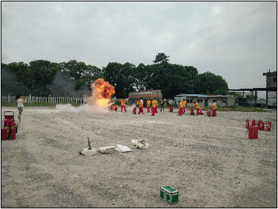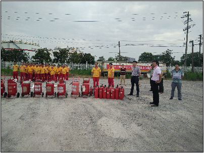 上午8:30演練準(zhǔn)時開始,消防官兵對各種滅火器具的使用進行專業(yè)講解和操作演示。演練項目包括初起火災(zāi)撲救、模擬發(fā)油臺提油車輛發(fā)油過程中著火撲救、庫區(qū)儲油大罐火災(zāi)撲救,演練持續(xù)2個小時.整個演練過程指揮有力、分工明確、配合默契、實戰(zhàn)氛圍濃厚。期間,在總公司物流中心領(lǐng)導(dǎo)及油庫管理人員的陪同下,安監(jiān)局陳局長還實地察看了油庫的安全監(jiān)控系統(tǒng),詢問油庫安全生產(chǎn)工作各項措施的落實情況。